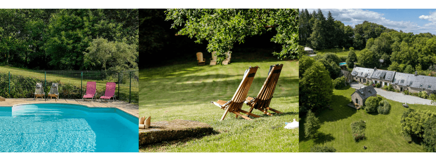 Piscine chauffée, sentiers forestiers et espaces extérieurs.